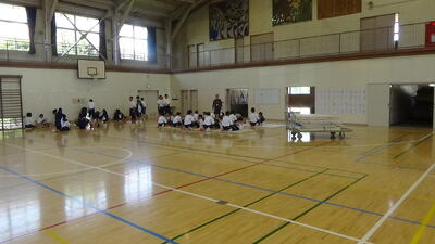 体育館では新体力テストが始まっていました。体力向上に各自のペースで励んで健康な体を作ってください。
