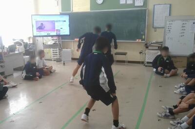 葦の渚学級では、左右に分かれたクラスメイトからの応援を受けながら反復横跳びをしていました。みんな元気です。