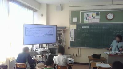 3年生の数学では、「三平方の定理の逆について理解しよう」を学習目標に大型提示装置を使いながら学習していました。さすがに中学3年生は難しい内容です。