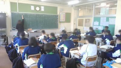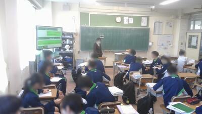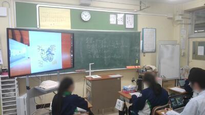 1年生の国語は「詩のイメージを想像しよう」をテーマに授業が進んでいました。詩の一部「海の響きをなつかしむ」からどんなことを想像できるかを考えていました。「子供のころに海で遊んだこと」等の意見が出ていました。