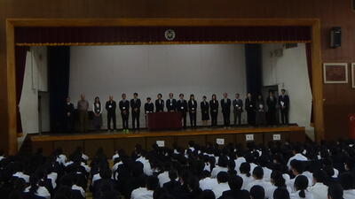 本日、着任式・始業式を行いました。体育館で着任された教職員の紹介後、3年生、2年生、0学年の順に学年職員を紹介しました。その後、部活動の顧問を紹介しました。会終了後、教室に戻り、2年生は旧クラスで新クラスが発表され、一喜一憂しながら新クラスへ移動していきました。始業式で生徒たちが一段と大きく見えました。心身ともに成長した福栄中生の今後の活躍が非常に楽しみです。