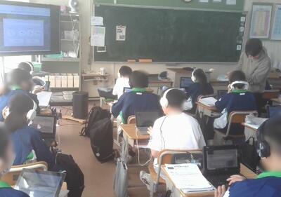 今日の1年生の音楽は、タブレットを使ってオリジナルの「かえるのうた」を作り、鑑賞していました。きれいにすっきりとした曲調だったり、多くの楽器を合わせた複雑な曲調のものなど様々でした。