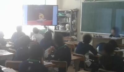 2年生の英語は、英語落語の映像を見てリスニングの学習をしていました。日本語で行うように抑揚と動きをふんだんに取り入れた落語家の話に真剣に見入っていました。