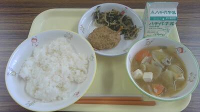 今日の給食(このしろさんが焼き、磯香和え、豚汁)