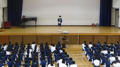 挨拶運動について話がありました。挨拶の大切さを全校生徒に伝えていました。自らみんなであいさつしましょう。