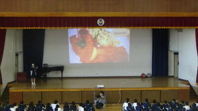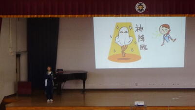 9月12日に行われた市川市中学校英語発表会に参加した生徒のうち、3年生女子2名が全校生徒の前で発表しました。堂々した発表は素晴らしかったです。