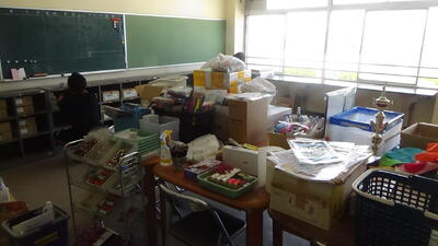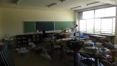 1年生の先生が学年室を掃除しています。ご苦労様です。