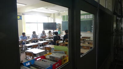 9月9日(月)に教員の授業力向上に向けて校内授業研究を行います。本日は理科の教員が講師の先生に来ていただき、指導案検討会を行っています。全ての教科で検討会を夏休み中に行い、当日を迎えます。