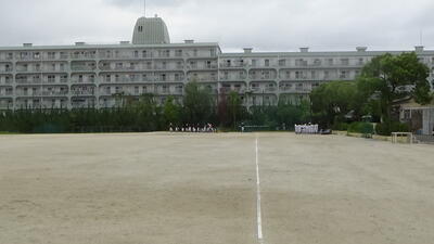 校庭ではサッカー部、野球部、ソフト部が練習しています。
