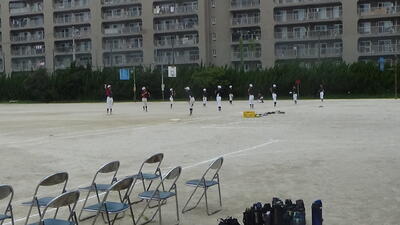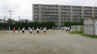 校庭ではサッカー部が他校を招いて練習試合をしています。アップの動きも声も揃ってきました。