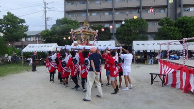 福栄1丁目「子どもの遊びの広場」に本校生徒が参加してボランティアをしています。地域貢献すると共に地域の方に育ててもらっています。明日は神輿のボランティアがあります。