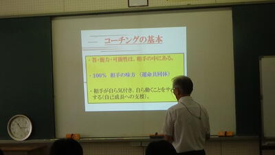 本日、昨年に引き続き水野先生に来ていただき、コーチング研修を行いました。ティーチング・コーチングの違いを教わり実際にペアになり傾聴する実習を行いました。