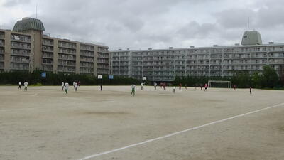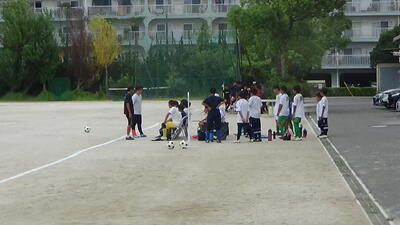 校庭ではサッカー部が他校を招いて練習試合をしています。アップの動きも声も揃ってきました。