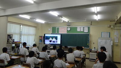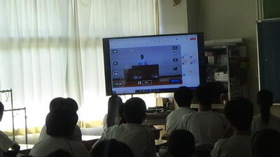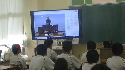 生徒会長のあいさつの後、立候補者の演説、応援責任者の演説がありました。それぞれ立派な演説でした。そして、すべての候補者が信任投票で当選しました。(第二理科室と各教室をチームスでつないで行いました。)