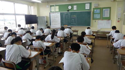 各学級とも、班で予想問題を作っています。予想通り出るか?楽しみですね。