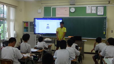 体の各部位について英語で何というか、先生から説明を受けながら声に出して学習していました。素晴らしい発音でした。