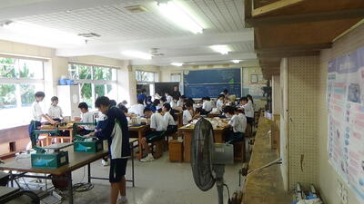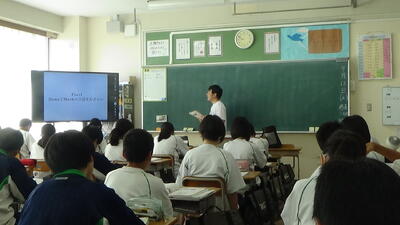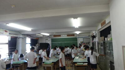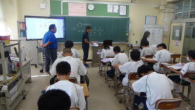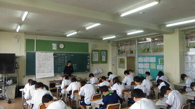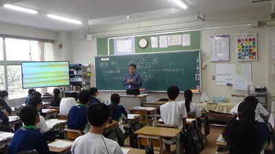 生物の分類について学んでいました。先生が生徒たちからカメムシなど身近な生物の名前を引き出しながら、進めていました。