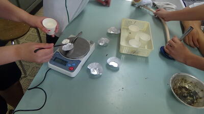 学習内容「白い粉、A・B・C・Dの性質を調べて物質を区別しよう」ということで実験結果を端末のミライシードという機能を使ってまとめていました。