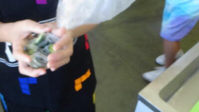 調理実習できゅうりの即席漬けを作っています。塩昆布を使って味付けをしています。