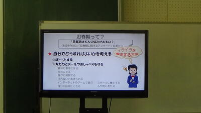その後、午後には教育委員会より、本校にも勤務経験のある元校長先生を講師にお招きして、PTAの方が思春期について学びました。アンジェラアキさんの「手紙~拝啓15の君へ」の歌詞を引用しながら思春期の子どもの心について説明していただきました。
