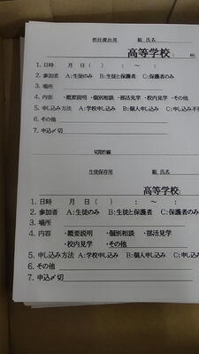 今週から3年生は進路に向け、校長面接が本格的に始まります。廊下には高校見学などのチラシが置かれています。