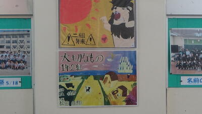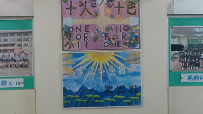 さざなみ祭(合唱祭)のポスターが貼り出されました。みんな立派な作品です。本番が楽しみです。