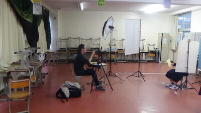 入試の願書用の個人撮影を行っていました。みんな真剣な表情でした。