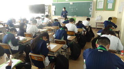 1・2年生各教科、授業中に解答用紙の返却、問題の解説を行っていました。今回の結果を次につなげましょう。
