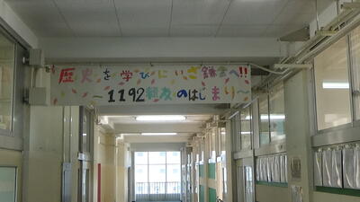 天井に校外学習のスローガンが貼り出されました。来週が本番です。しっかり準備して行きましょう。