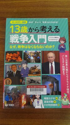 「13歳から考える戦争入門」という本を紹介します。なぜ、戦争はなくならないのか?について過去の歴史を振り返りながら詳しく書かれています。ぜひ読んでほしいです。