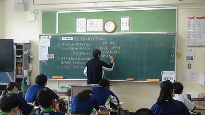 3年生の国語の授業では随筆に取り組んでいました。今日の問いとして「立っている春」とは何だろうということで学習していました。その後、立夏、立秋、立冬についてもそれぞれグループに分かれ、他者の考えに触れて自分の考えを広げていきました。最後のまとめで大切なのは自分の言葉で表現することだと先生から話がありました。