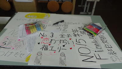 5月18日(土)ひかり祭(体育祭)に向け、学校では修学旅行等の準備と同時進行でひかり祭の準備しています。これは召集のプラカード作りです。