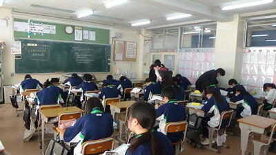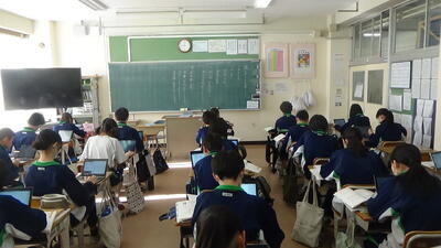 2年生の国語の授業の様子です。レポートの書き方を学んでいま