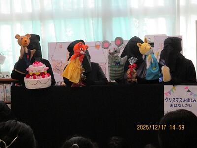 大きな絵本や人形劇など、子どもたちも楽しく聞くことができました。