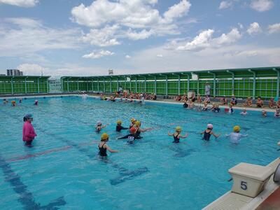1年生にとっては、はじめてのプールです。