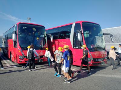 大山千枚田での活動を終え、昼食会場に向かいます。ほぼ予定通り活動できています。