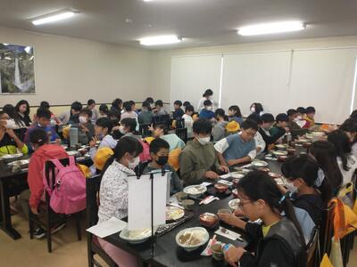 18時過ぎから夕食を食べました。たくさん活動したので、たくさん食べている子が多かったです。