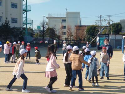 今日の業間休みに、3年生、5年生の長縄記録会を行いました。目標達成したクラスがあり、歓声が上がっていました。