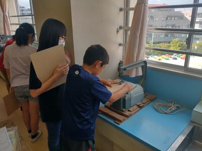 図工の授業の様子です。自分のイメージしたものを手や道具を使って造形していきます。