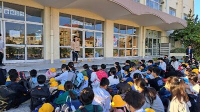 ほぼ予定どおりの時間に学校に到着しました。数名の保護者の方にも出迎えていただき、ありがとうございました。