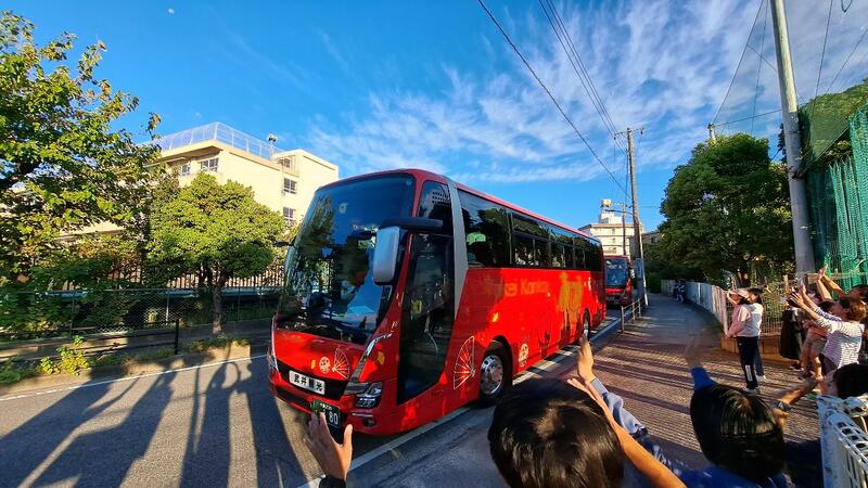 穏やかな晴天のもと、元気いっぱい出発しました!