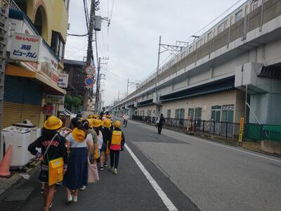 2年生が町たんけんに出かけました。今日は南行徳駅方面に行きました。11月はグループで回ります。
