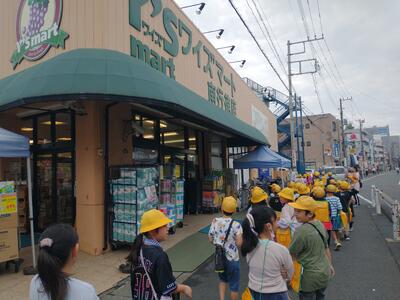生活科の学習で2年生が町たんけんに出かけました。11月にグループごとに探検する予定なので、その下調べで、学年みんなで回りました。どんなお店があるかな?