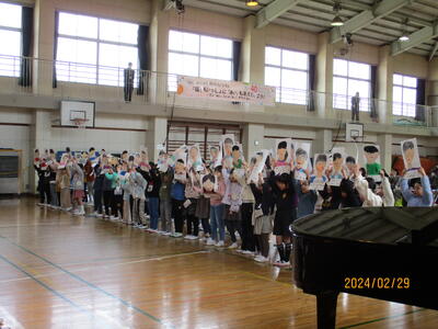 2月13日の業間休みに、交流仲間委員会主催の◯✕クイズ大会がありました。参加した児童は、とても楽しんでいました。
