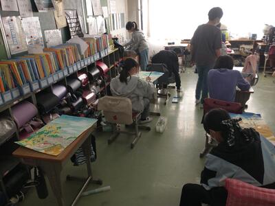 5年生が、ミシンでエプロンを作っています。ミシンの使い方に慣れていないので、苦戦する子もいますが、頑張って縫っていました。