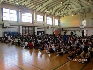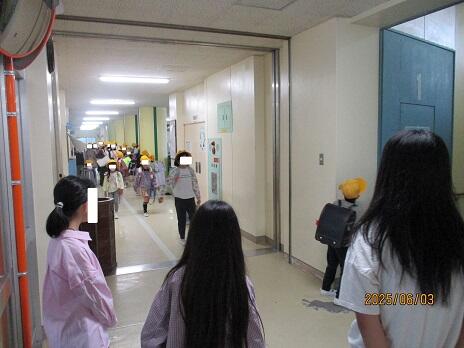 子どもたちは、「お・か・し・も」を守り、すばやく校庭に避難しました。