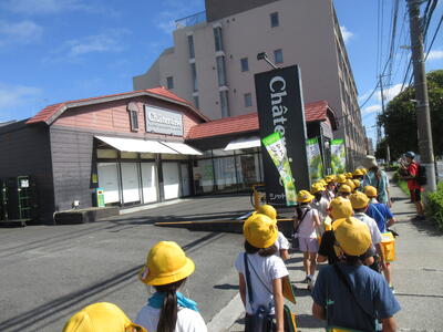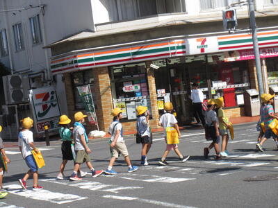 2年生が町たんけんに出かけました。今日は、全員で学区を探検し、町にはどんなものがあるか確認しながら歩きました。