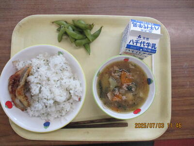 その枝豆は、さっそく給食に出て、みんなでおいしくいただきました。
