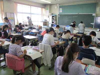 今日の算数は6年生が3クラスにわかれて授業をしていました。練習問題にたくさんチャレンジしていました。