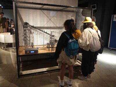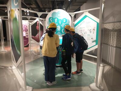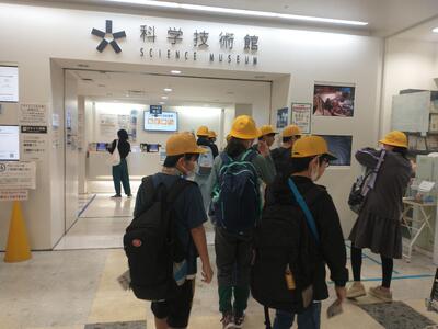 最後の見学場所、科学技術館に到着し、グループごとに見学中です。体験しながら学ぶことができるので、楽しそうに活動しています。